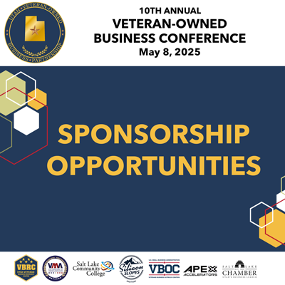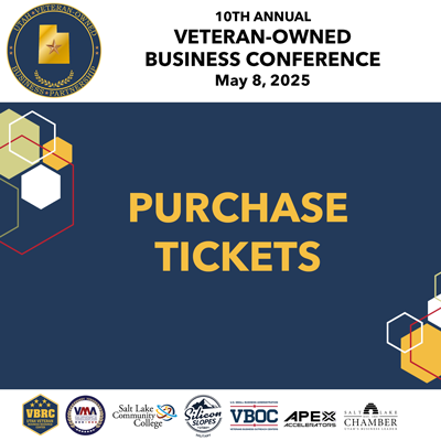 Get your tickets now for the 10th Annual Veteran Owned Business Conference at to be held at Salt Lake Community College in Taylorsville, Utah, on 8 May 2026, with Cyprus Credit Union as the title sponsor! You will hear from the incredible speakers and have the opportunity to use the in-person resources to help you move closer to accomplishing your business goals. Join us for the exciting presentation of the third Utah Veteran Pillar Award given at this conference, honoring an outstanding local hero! You’ll also connect with top-tier partners, other veteran owned businesses and resources, and gain exclusive access to invaluable resources from the Utah Veteran Business Resource Center (VBRC), Utah APEX Accelerator, the Veteran Business Outreach Center (VBOC), the Small Business Development Center, and the Utah Department of Veterans and Military Affairs (UDVMA). This is the must-attend event of the year for military-connected entrepreneurs in Utah!Â